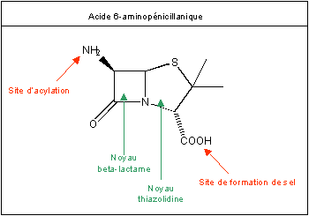 Diversité des antibiotiques de type beta-lactames: principaux cycles et antibiotiques représentatifs |