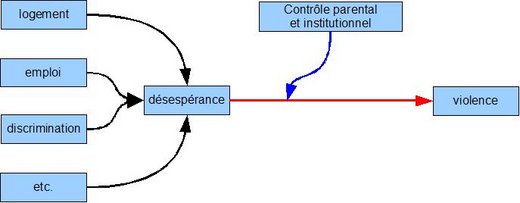 À la suite des émeutes dans les banlieues d'octobre et novembre 2005, on a avancé des discours qui reposent sur une théorie causale très simple, peut-être même sommaire, du comportement violent. Cette théorie est partagée par les uns et les autres. Elle a quelquefois été sollicitée pour expliquer également la délinquance des jeunes. Elle a le statut de ce que des chercheurs appellent une « théorie publique ». Cette théorie pose que la désespérance des jeunes (ou une notion équivalente : détresse, exaspération ou ras le bol sociaux) est la cause directe de la violence et que, par conséquent, les causes de la désespérance sont aussi par transitivité celles de la violence, comme si cette désespérance ne pouvait que s'extérioriser dans la violence, sauf dans les cas où celle-ci est réprimée par les familles et les institutions.