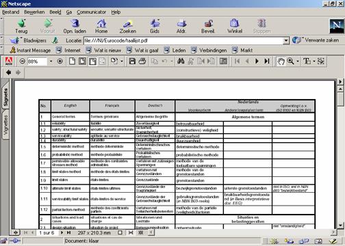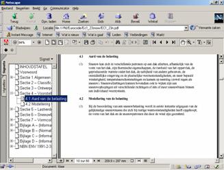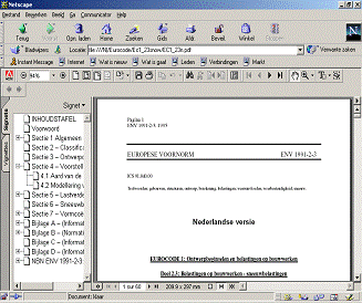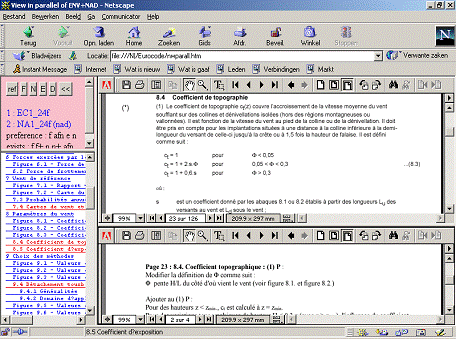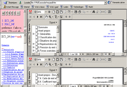 Dans la phase de test du projet Eurocode CD-Rom (versions 1 et 2), la consultation des documents s'effectue en utilisant les browsers de Netscape (sauf le 6.0) qui garantissent en effet l'exécution des appels de documents PDF par page et position sur la page, pour la consultation synoptique des ENV et NAD. Dans une phase ultérieure, la consultation s'effectuera directement dans le logiciel Acrobat, à l'aide de logiciels auxiliaires (plugs-in) en cours de développement.