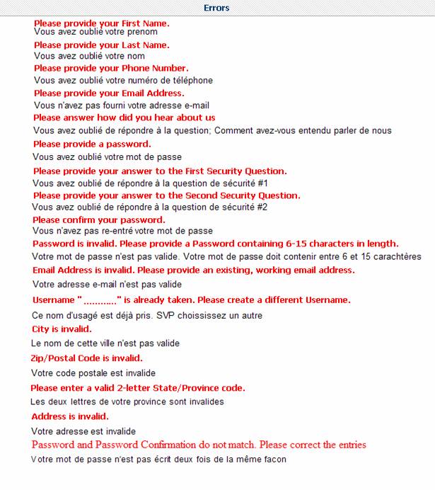 Voici maintenant la première page du formulaire d'inscrition traduite