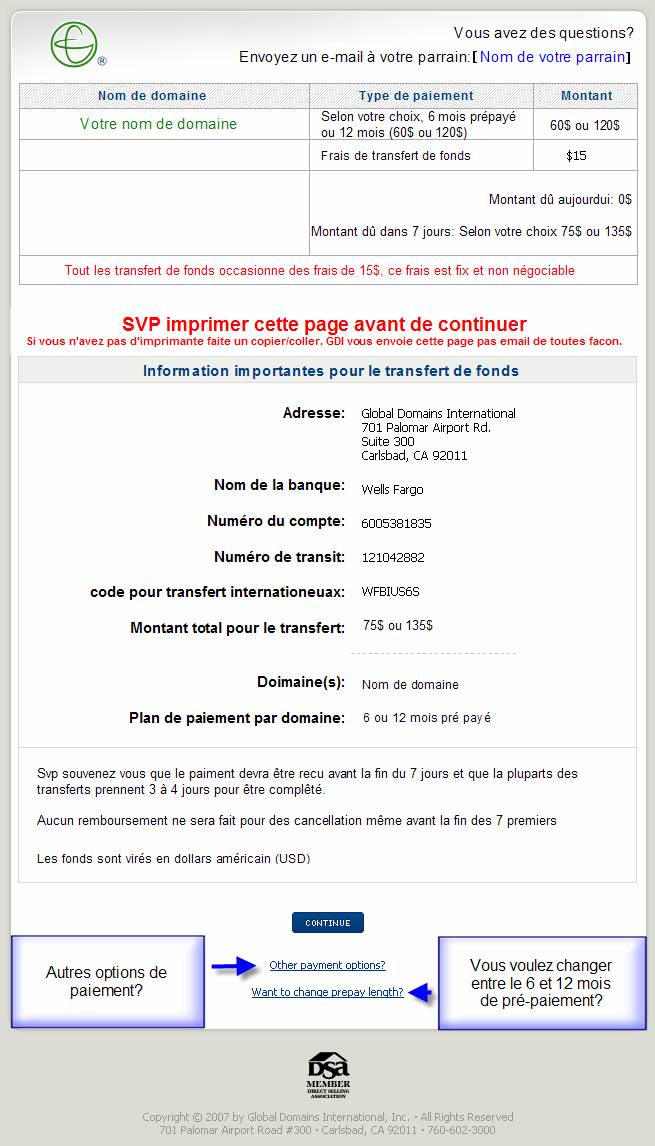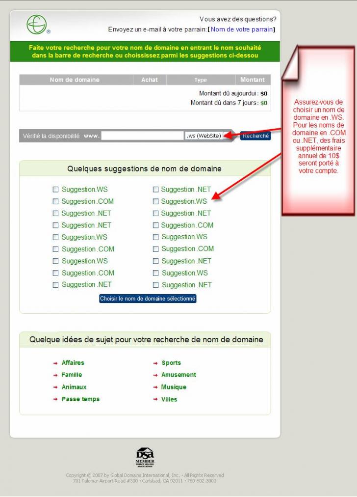 J'ai changé d'idée et cliqué sur Retour; Global Domain International, cliquez ici