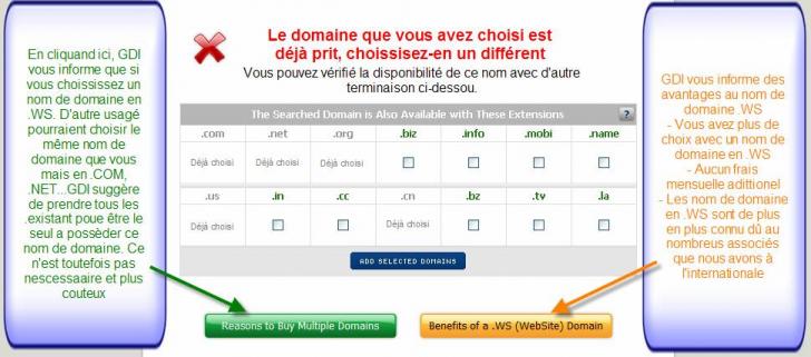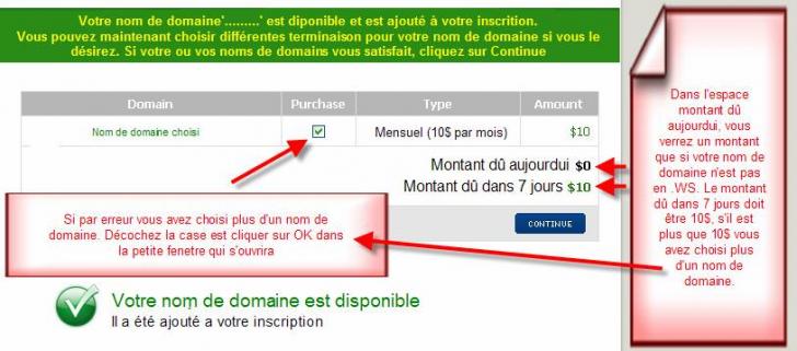 Quand vous aurez choisi un nom de domaine disponible vous verrez