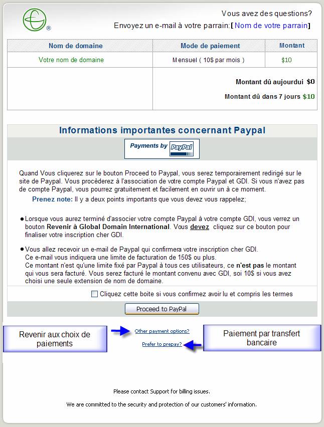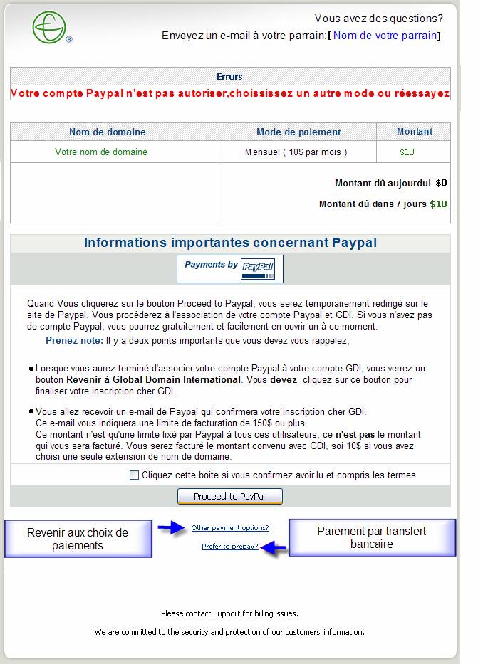 Vous cliquer ici si vous avez changé d'idée et cliqué sur Retour; Global Domain International