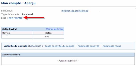 Vous pourrez vous assurez que votre compte Paypal est vérifié en vous dirigeant sur votre compte Paypal