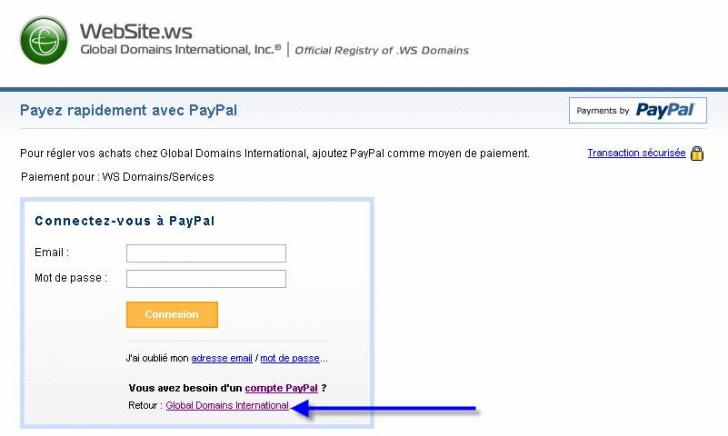 Si vous n'avez pas de compte Paypal ne cliquez pas sur Vous avez besoin d'un compte Paypal, cliquez ici