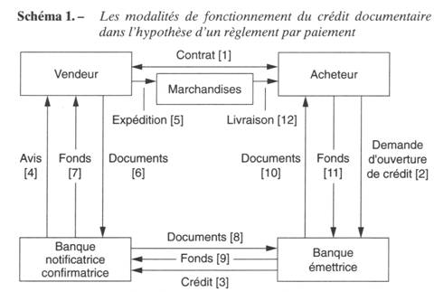 Pour comprendre les modalités de fonctionnement du crédit documentaire, le plus simple est d'en présenter les différentes phases à partir d'un exemple . Cette présentation est faite en douze points comme le suggère le schéma 1.