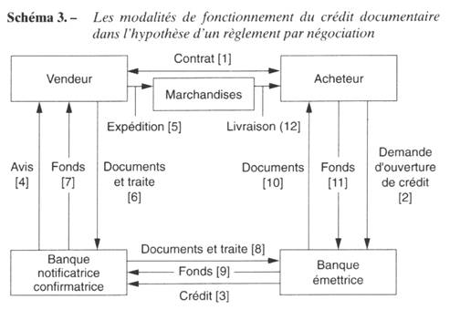 Dans le cadre d'un règlement par négociation, le schéma général de fonctionnement du crédit documentaire n'est pas non plus fondamentalement modifié à l'exception des points 6,7 et 8 (schéma 3).