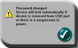Si vous avez défini un mot de passe, lorsque vous retirez le périphérique du port USB (ou en cas de coupure de l'alimentation), la partition 1 du périphérique se verrouille automatiquement. Il est alors impossible d'accéder à cette partition, de lire ou écrire des données dans cette partition.