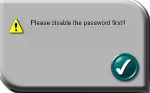 Entrez le mot de passe approprié. Le mot de passe est désactivé (supprimé).