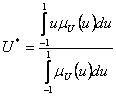 On utilise une méthode de défuzzification dite centre de gravité. On constante que cette méthode effectue la moyenne des actions u pondérées par leurs appartenances mU(u)
