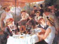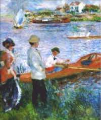 Et c'est ensemble, sans jamais se décourager que Renoir et Monet vont peindre sur la rive d'un lieu ŕ la mode: "La Grenouillčre", un caboulot, monde de couleur et de gaieté, entre Chatou et Bougival oů l'on se retrouve pour discuter, danser, et faire du canotage.