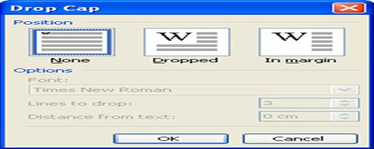 Pour créer une lettrine, FORMAT, LETTRINE. Dans la boite de dialogue déterminez le type voulu, la police, la hauteur.