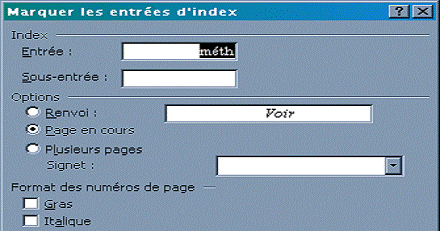 champ et le texte masqué. Si les champs XE (entrée d'index) sont visibles, cliquez sur