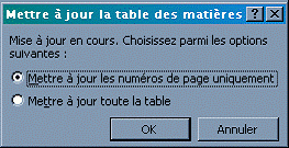 devez procéder manuellement à la mise à jour de la table des matières. Par exemple, si vous modifiez