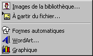 Vous pouvez également insérer un dessin faire: INSERTION, OBJET, IMAGE , et CLIP ART GALLERY, etc.