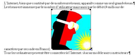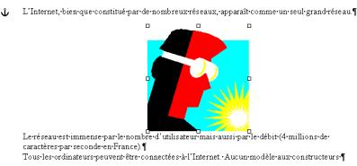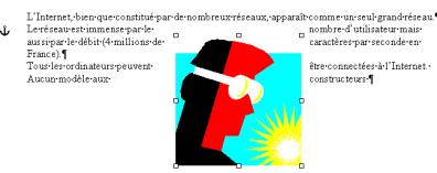 Word vous permet d'insérer des images dans votre document tel que des logos de compagnies, des photos et d'autres images pour donner plus d'intérêt ou une allure plus professionnelle à votre document. Cette page montre comment insérer une image qui est sur une disquette ou un disque dur. Vous pouvez aussi prendre une image située dans la librairie d'image de Microsoft. Avoir une belle image ne suffit pas. Il faut qu'elle ait la bonne grandeur. De plus, l'image doit être bien placée dans le document.