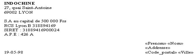 Le document de base sera pour cet exemple une convocation qui va se présenter sous la forme suivante :