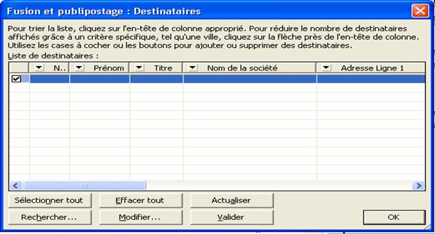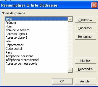 Le publipostage permet d'envoyer une lettre type à des personnes répertoriées dans une liste de publipostage. La liste de publipostage est un document qui répertorie les adresses de vos contacts. Une liste de publipostage peut être un tableau (Word), une feuille de calcul (Excel) ou une base de donnée (Acces) dans laquel on aura par exemple une colonne pour le prénom, une autre pour le nom, la rue, le code postal, la ville et d'autres suivant vos besoins. Chaque en tête de colonne correspondant à ce que l'on appelle un champ de fusion qui sera inserer dans notre lettre type sous la forme suivante: «prénom» «nom» «rue» etc.. et qui lors de la fusion vers l'imprimante imprimera autant de feuilles que l'on à de noms dans la liste de publipostage en remplaçant les champs de fusion ( «prénom» ) par le prénom correspondant.