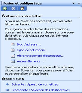En cliquant sur autres éléments, il faut choisir la disposition des éléments dans la lettre.