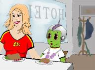 Im Hotel macht Uwe Bekanntschaft mit der kulinarischen Vielfalt eines deutschen Frühstücksbüfetts. Aber er lernt nicht nur, dass die erste Mahlzeit des Tages die wichtigste ist. Während ihr Schützling sich mit wachsender Begeisterung den Bauch voll schlägt, fachsimpelt Susi mit Dieter, einem Hotelgast aus Hamburg, über Fußballsprache. Uwe hört aufmerksam zu und staunt über die vielen wirklich gehaltvollen Ausdrücke. Das muss er unbedingt nach Elfmetra melden!