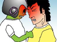 Das Spiel ist aus; es beginnt der Gang die Treppen des Stadions hinunter. Dabei bringt Uwes lauthals verkündete Freude über den "Abstieg" den Außerirdischen fast in Gefahr, denn um ein Haar gerät er mit einem Hooligan aneinander! Der wütende Fan nämlich hält die Fröhlichkeit des Spezialagenten für reine Schadenfreude. Uwes diplomatische Fähigkeiten sollte man aber nicht unterschätzen, und durch geschickte "Deeskalationstaktik" macht er sich den in Rage geratenen Feind doch noch zum Freund...