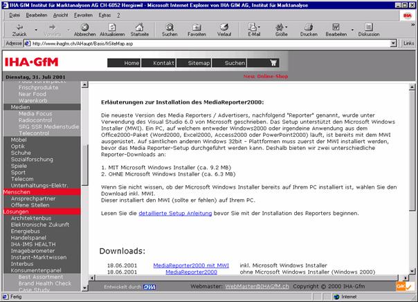 Installation der Software via Internet (www.ihagfm.ch)