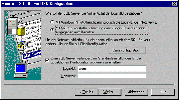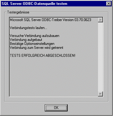Check gemäss ODBC Treiberverbindung.