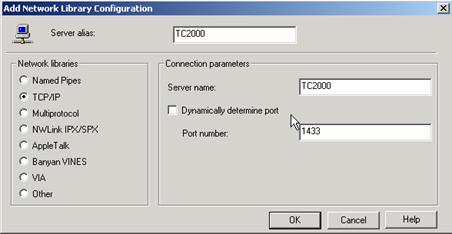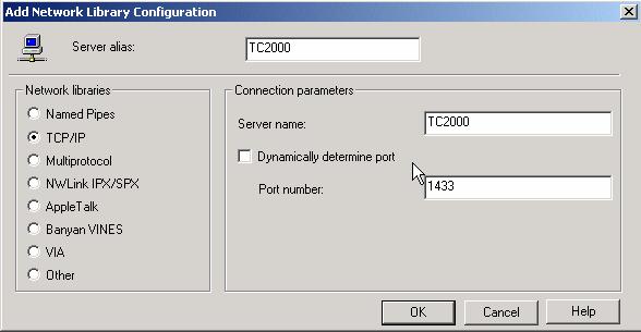 Protokoll TCP/IP muss gewählt sein. Servername TC2000 und Portnummer 1433 sollte aktiv sein. Die Dynamische Portzuweisung sollte deaktiviert sein (Firewall).