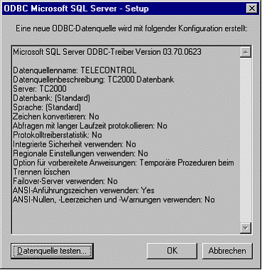 Bei Problemen eine Bildschirmkopie dieses Fensters anfertigen. Mit Datenquelle testen weiter.