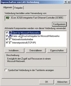 Der Client für Microsoft Netzwerk muss installiert sein.