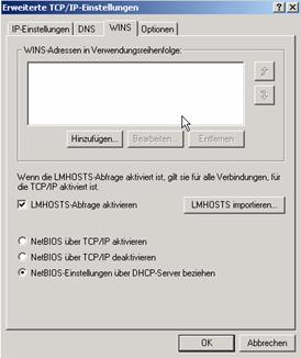 Check ob LMHOSTS-Abfrage aktiviert ist ?