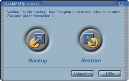 Wählen Sie jetzt entweder die Funktion Backup oder Restore, und der Assistent führt Sie gezielt durch den jeweiligen Programmteil.