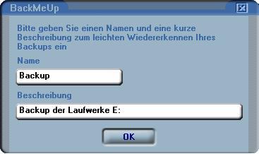Geben Sie den Namen und eine kurze Beschreibung der CD ein, damit Sie Ihr Backup später problemlos wiederfinden können.