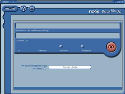 Danach brauchen Sie nur noch - falls nicht schon geschehen - die Sicherungs-CD einzulegen und die Go-Schaltfläche zu drücken.
