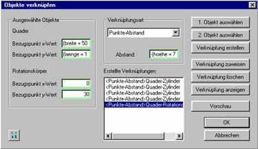 Verknüpfung an 3D-Objekten über Flächen bestimmen