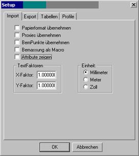 Da jeder dieser Papier- oder Layoutformate einen eigenen Maßstab haben kann, werden diese auch so übernommen und in MegaCAD entsprechend nachberechnet und skaliert. Wenn Sie dagegen auf die eigentlichen Daten des Modellbereiches Wert legen, also nicht die zum Druck aufbereiteten Papierbereiche benötigen, müssen Sie diese Option immer ausschalten. Bei eingeschalteter Option werden die Daten des Modellbereiches nicht importiert !.