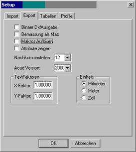wird dieser Schalter aktiviert, entsteht im Ergebnis eine DXF- Datei im Binärformat. Vergewissern Sie sich im Vorfeld, ob der Empfänger der Datei dieses Format auch mit seinem Programm lesen kann. Der Vorteil sind wesentlich kleinere Dateien im Gegensatz zu ASCII- Dateien.