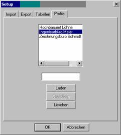Wählen Sie einen Profilnamen aus. Danach erscheint die Dialogmaske zur Definition des Übergabeprofils.