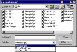 SelDateien-> In c:\ Megacad3d\Prt alle 2D PRT Files selektieren.