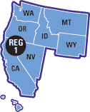 Region 1- California, Nevada, Oregon, Washington, Idaho, Montana, Hawaii, and (partially) Wyoming