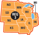 Region 3 - Illinois, Iowa, Kansas, Minnesota, Missouri, Nebraska, North Dakota, South Dakota, Wisconsin, and (partially) Indiana and Michigan