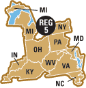 Region 5 - Ohio, West Virginia and (partially) Indiana, Kentucky, Maryland, Michigan, New York, North Carolina, Pennsylvania, and Virginia