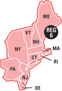 Region 6 - Connecticut, Delaware, Maine, Massachusetts, New Hampshire, New Jersey, Rhode Island, Vermont, and (partially) Pennsylvania, Maryland, and New York
