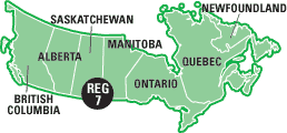 Region 7 - Alberta, British Columbia, Manitoba, New Brunswick, Newfoundland, Nova Scotia, Ontario, Prince Edward Island, Saskatchewan, Quebec, and Yukon Territory