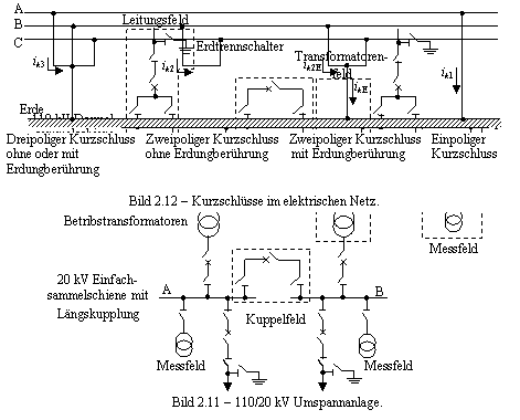 Der Kurzschluss in einem elektrischen Netz eintritt bei zufälliger oder beabsichtiger Verbindung über eine verhältnismässig niedrige Wiederstand oder Impedanz zwischen zwei oder mehr Punkten eines Stromkreises, die normalerweise unterschiedliche Spannung haben (Bild 2.12).