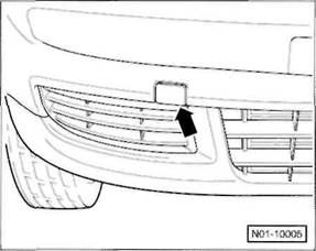 Rechte Abdeckung f r Nebelscheinwerfer ausbauen. Dazu Schraube -1- herausdrehen, Abdeckung zusammendr cken -Pfeile- und nach vorn herausziehen.