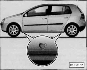 GOLF: Die Aufnahmepunkte f r den Bordwagenheber sind je nach Ausstattung am Unterholm durch Einpr gungen gekennzeichnet.