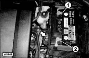 Mutter -1- abschrauben und Massekabel -2- zur Seite legen.