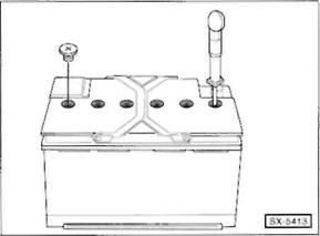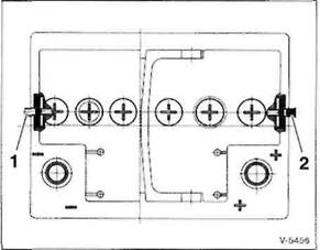 Massekabel (-) und Pluskabel (+) von der Batterie abklemmen. Achtung: Hinweise im Kapitel Batterie aus-und einbauen beachten.