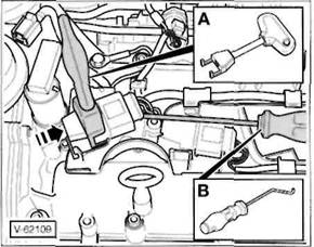 Achtung: Falls die Batterie-Plusklemme locker ist, muss vor dem Festziehen der Plusklemme wegen Kurzschlussgefahr die Masseklemme an der Batterie abgeklemmt werden. Nachdem die Plusklemme festgezogen ist, Massekabel wieder anklemmen. Battehe-Massekabel abklemmen, siehe Seite 68.